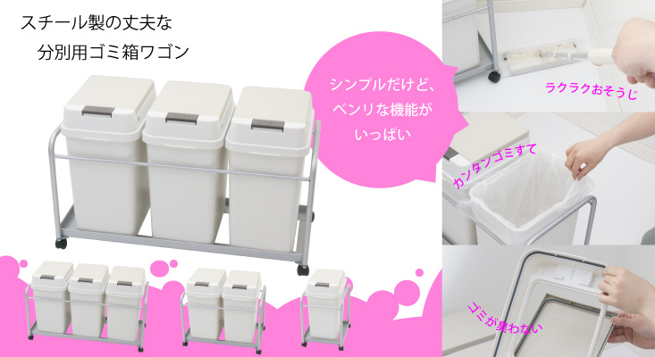 hachimarketオリジナル品 シンプルながらも機能性にこだわった分別用ゴミ箱ワゴンです