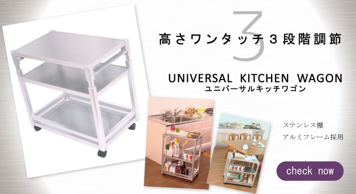 hachimarketオリジナル品 天板高さがワンタッチで高さ調整できるから、いろいろな使い方ができるワゴンです